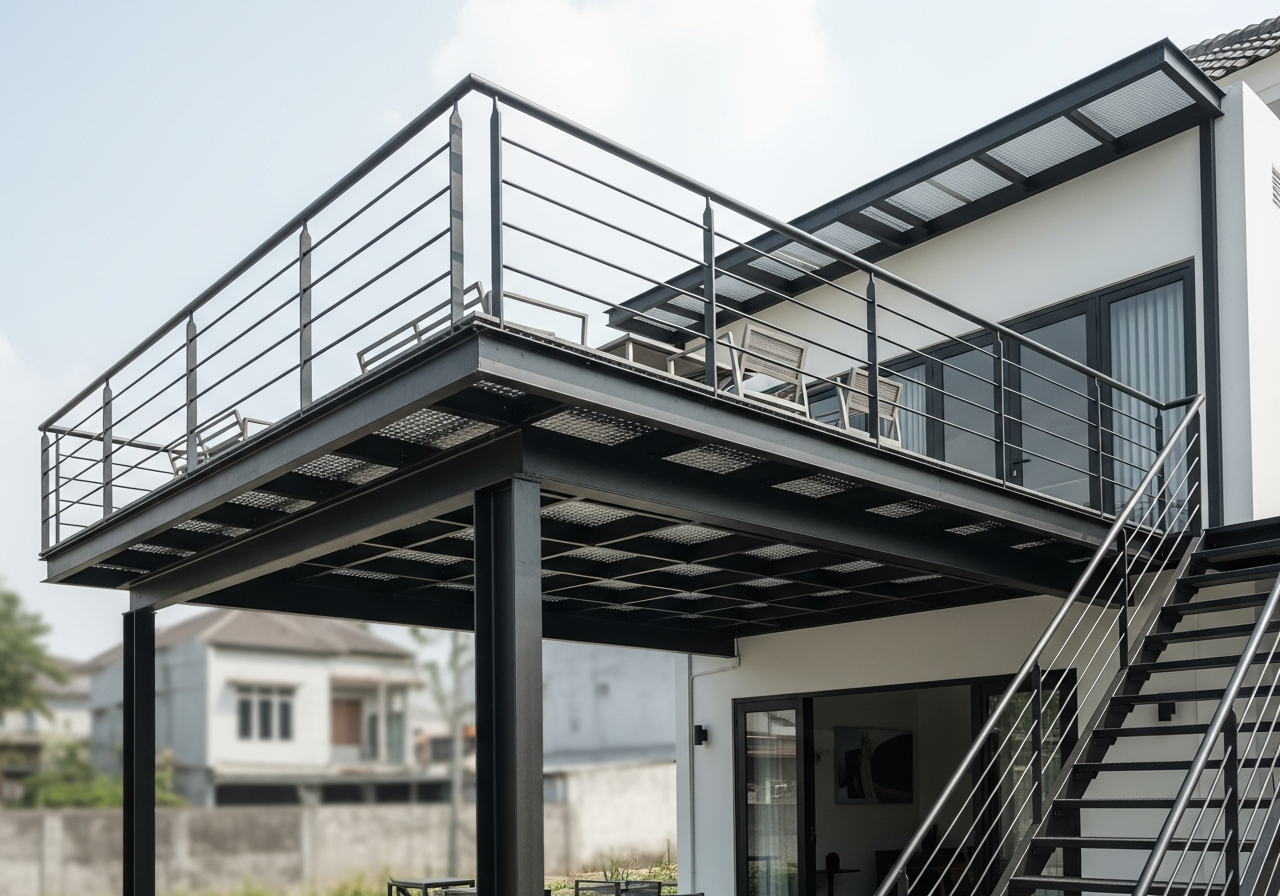 Di kota padat seperti Medan, setiap meter persegi lahan adalah aset berharga. Banyak pemilik rumah atau pengusaha ingin memaksimalkan ruang vertikal: membuat area santai di atas carport, ruang penyimpanan di atas gudang, atau cafe rooftop mini di atas teras. Namun, membangun lantai tambahan konvensional butuh biaya besar dan waktu lama. Solusi cerdasnya? Kanopi Mezanin Dak Besi.