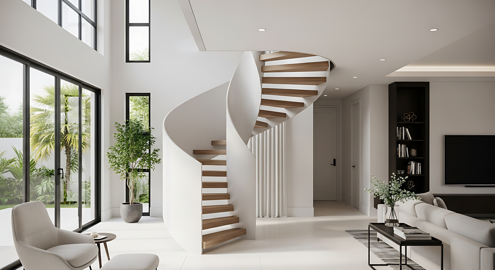 Kami memahami bahwa transisi antar lantai terletak pada keselarasan antara dua konsep. Oleh karena itu, kami menerapkan proses integrasi yang memastikan tangga melingkar lantai 2 Anda benar-benar menjadi penghubung yang menyatu dengan ekosistem desain interior kedua lantai.