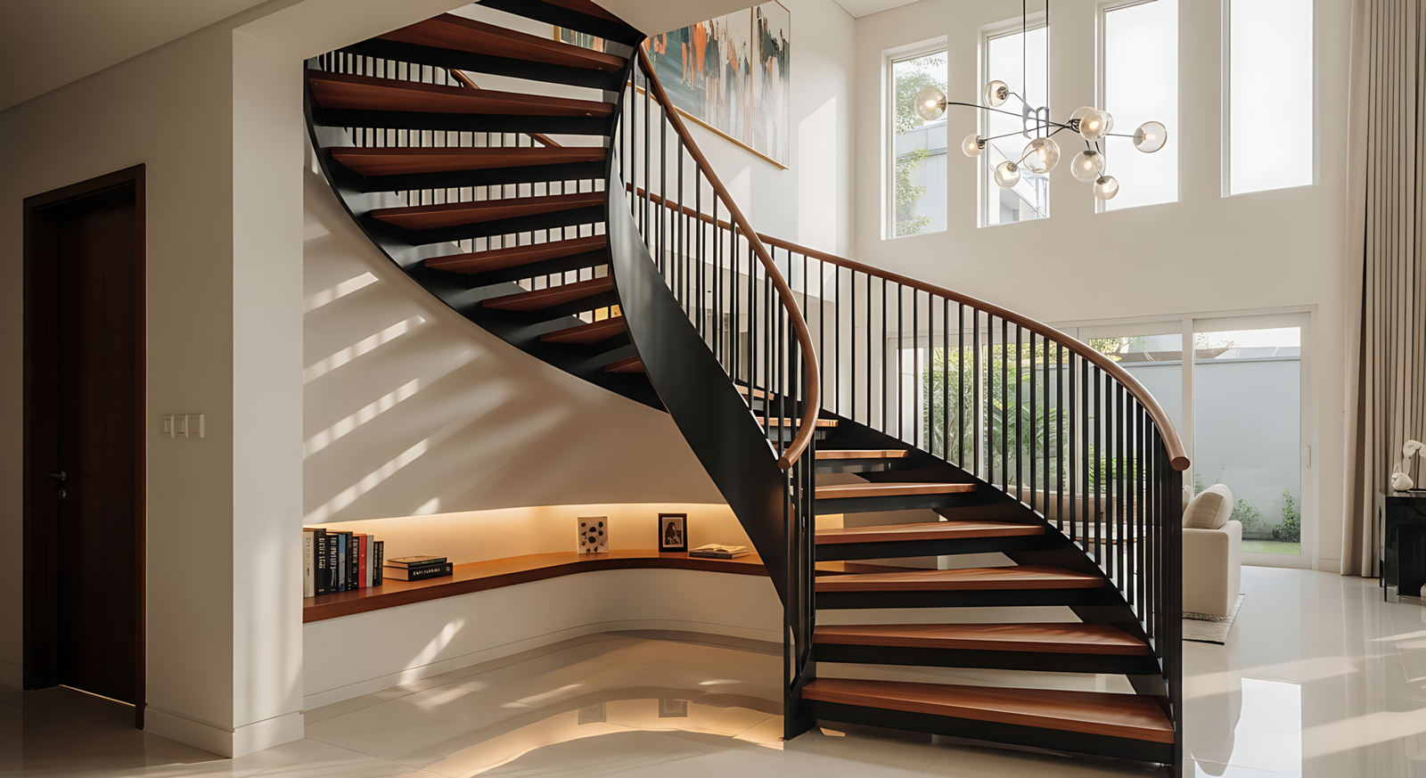Kami memahami bahwa ruang di rumah sangat berharga. Oleh karena itu, kami menerapkan solusi pemanfaatan ruang yang memastikan setiap sentimeter ruang di bawah tangga dimanfaatkan secara optimal tanpa mengorbankan fungsionalitas tangga melingkar.