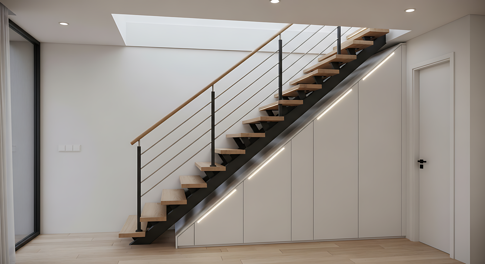 - Pencahayaan bawah anak tangga untuk visibilitas optimal